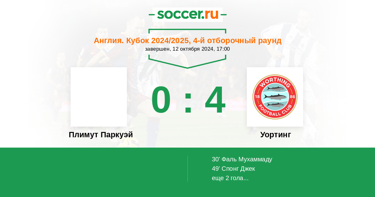 Протокол матча Плимут Паркуэй против Уортинг