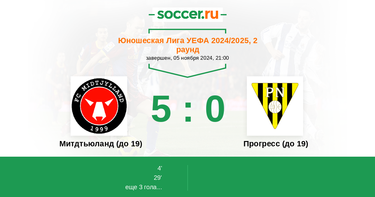 Протокол матча Митдтьюланд (до 19) против Прогресс (до 19)