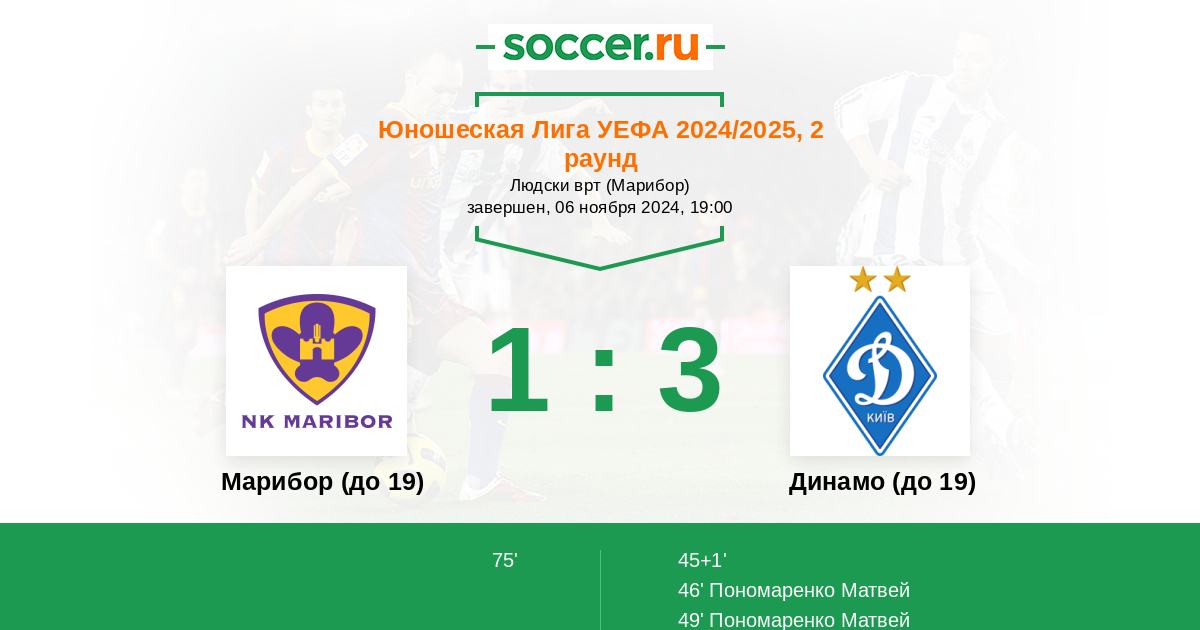 Протокол матча Марибор (до 19) против Динамо (до 19)