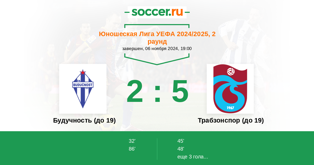 Протокол матча Будучность (до 19) против Трабзонспор (до 19)