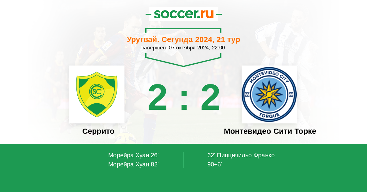 Протокол матча Серрито против Монтевидео Сити Торке