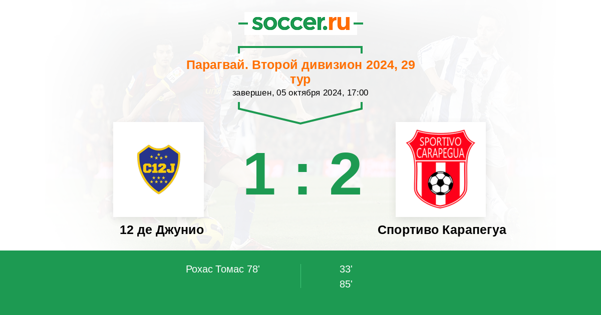 Протокол матча 12 де Джунио против Спортиво Карапегуа