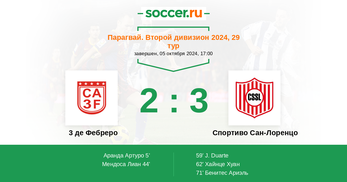 Протокол матча 3 де Фебреро против Спортиво Сан-Лоренцо