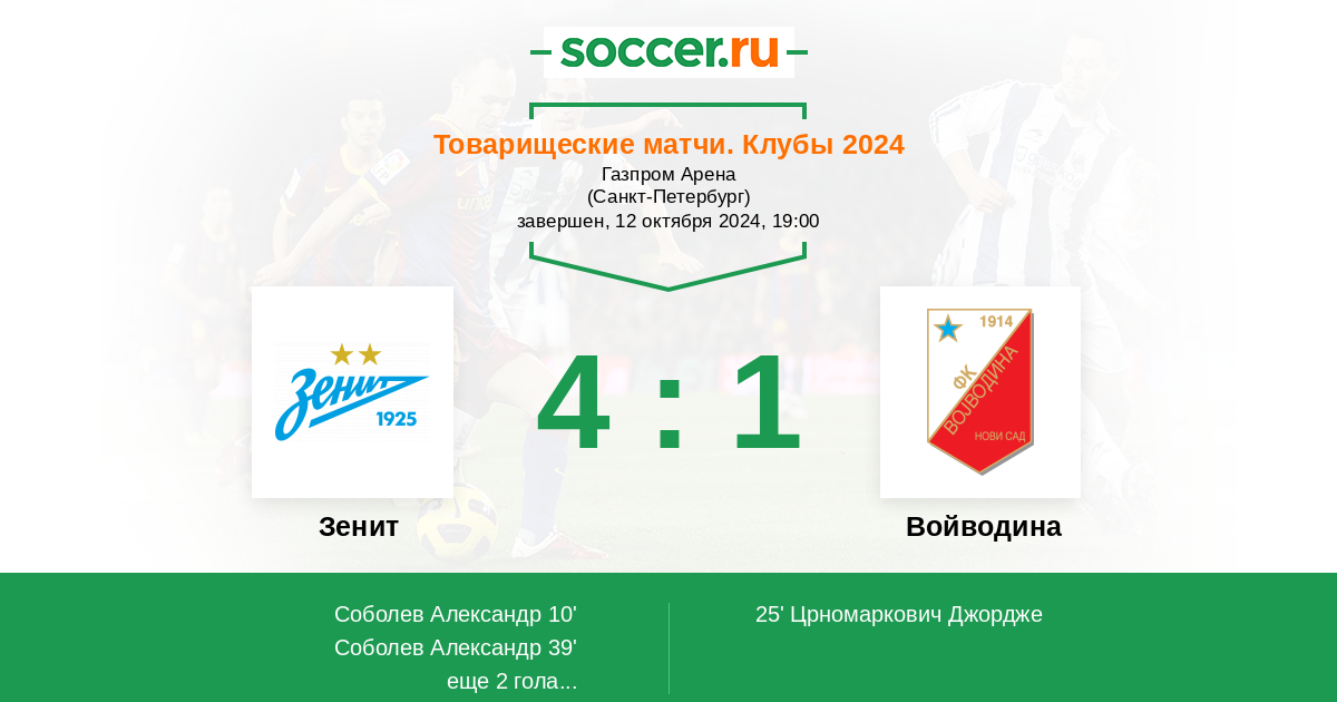 Протокол матча Зенит против Войводина