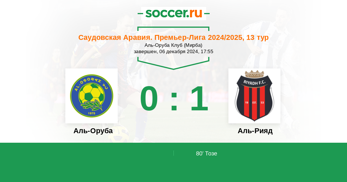 Протокол матча Аль-Оруба против Аль-Рияд