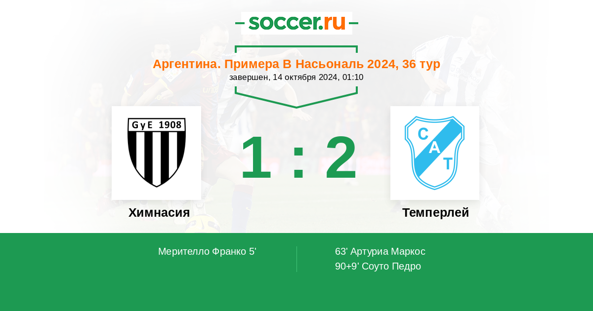 Протокол матча Химнасия против Темперлей