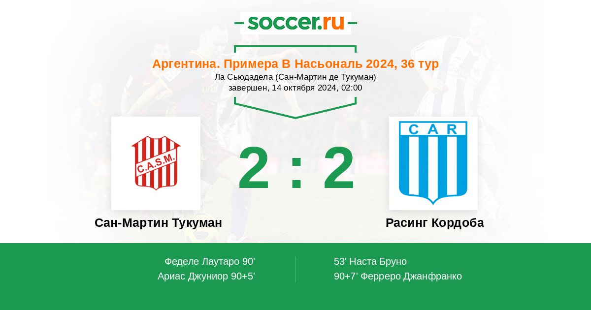 Протокол матча Сан-Мартин Тукуман против Расинг Кордоба