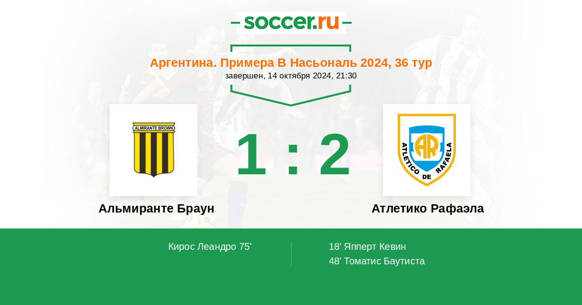 Протокол матча Альмиранте Браун против Атлетико Рафаэла