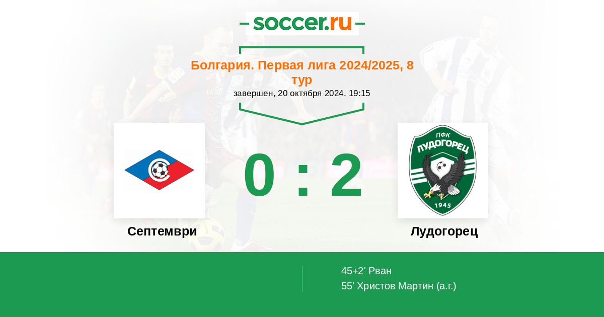 55' (0:2) Автогол Христов Мартин (4)