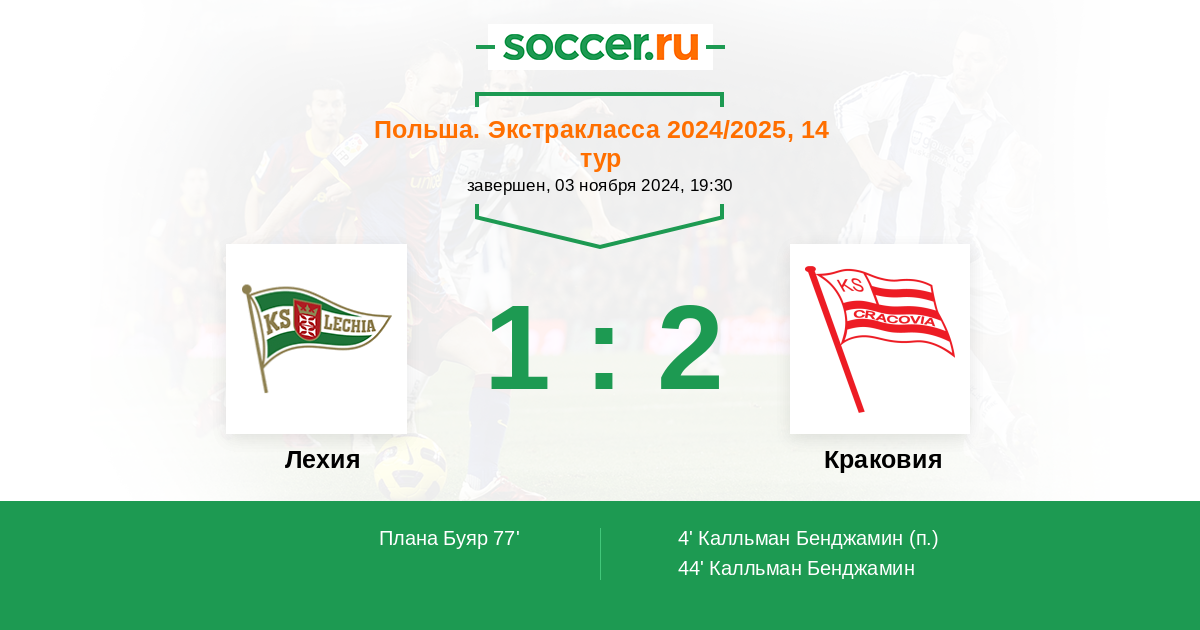 Протокол матча Лехия против Краковия
