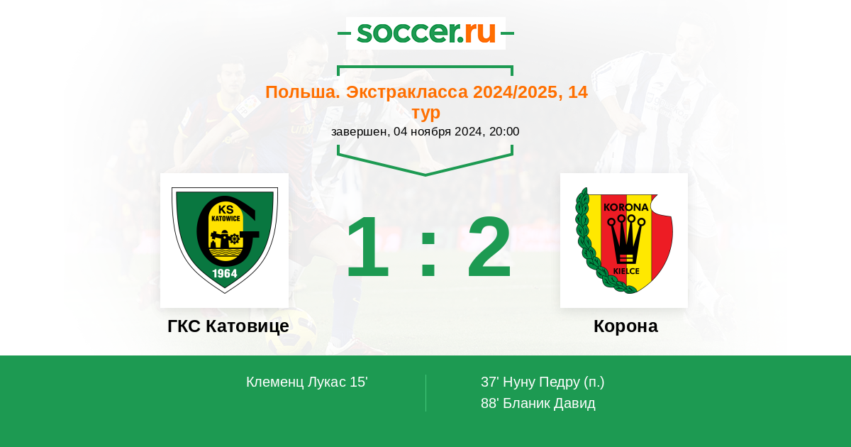Протокол матча ГКС Катовице против Корона