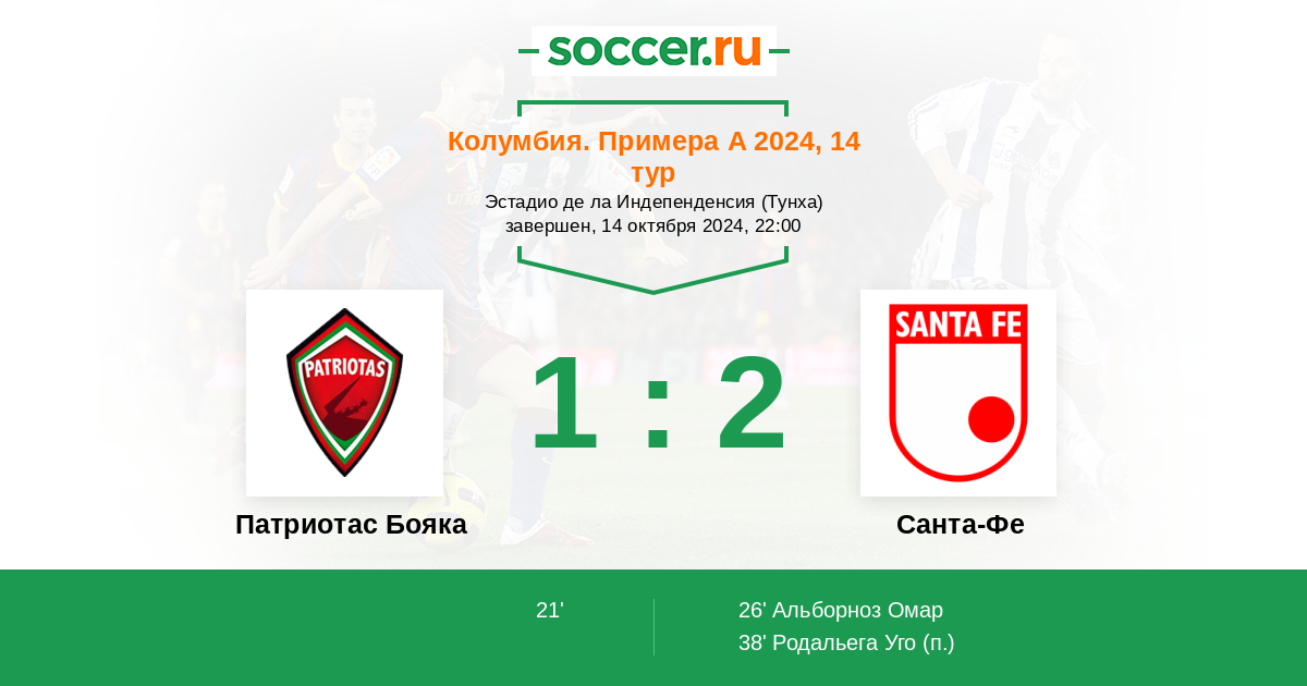 26' (1:1) Альборноз Омар (80) (Зулуага Хуан (8))