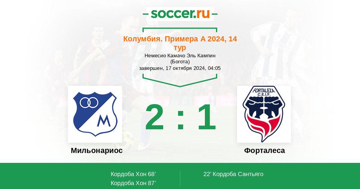 Протокол матча Мильонариос против Форталеса