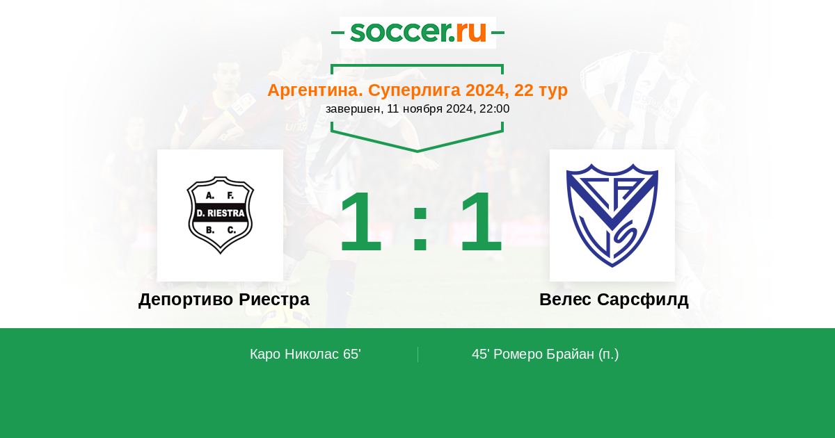 Протокол матча Депортиво Риестра против Велес Сарсфилд