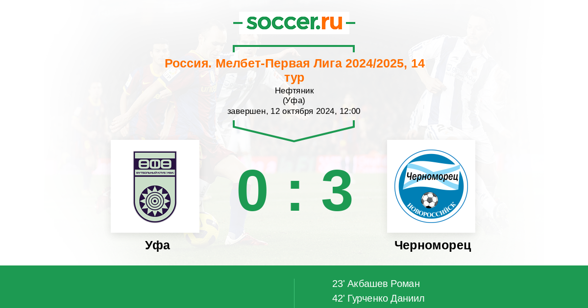 Протокол матча Уфа против Черноморец