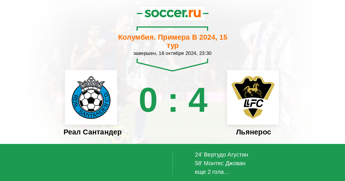 Протокол матча Реал Сантандер против Льянерос