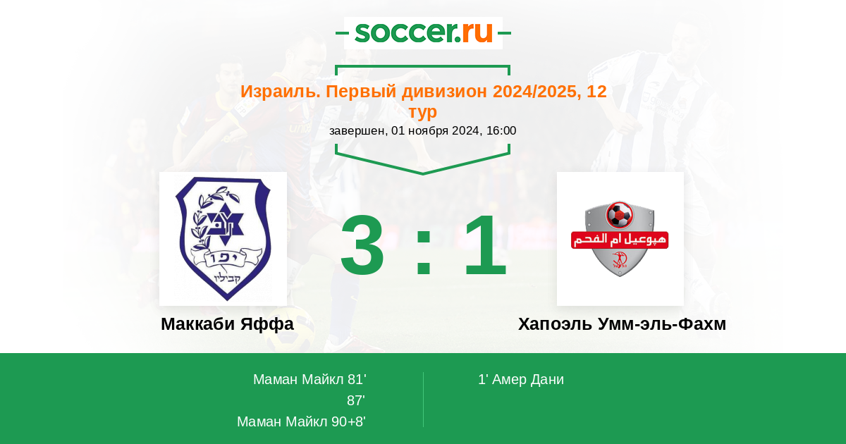 Протокол матча Маккаби Яффа против Хапоэль Умм-эль-Фахм