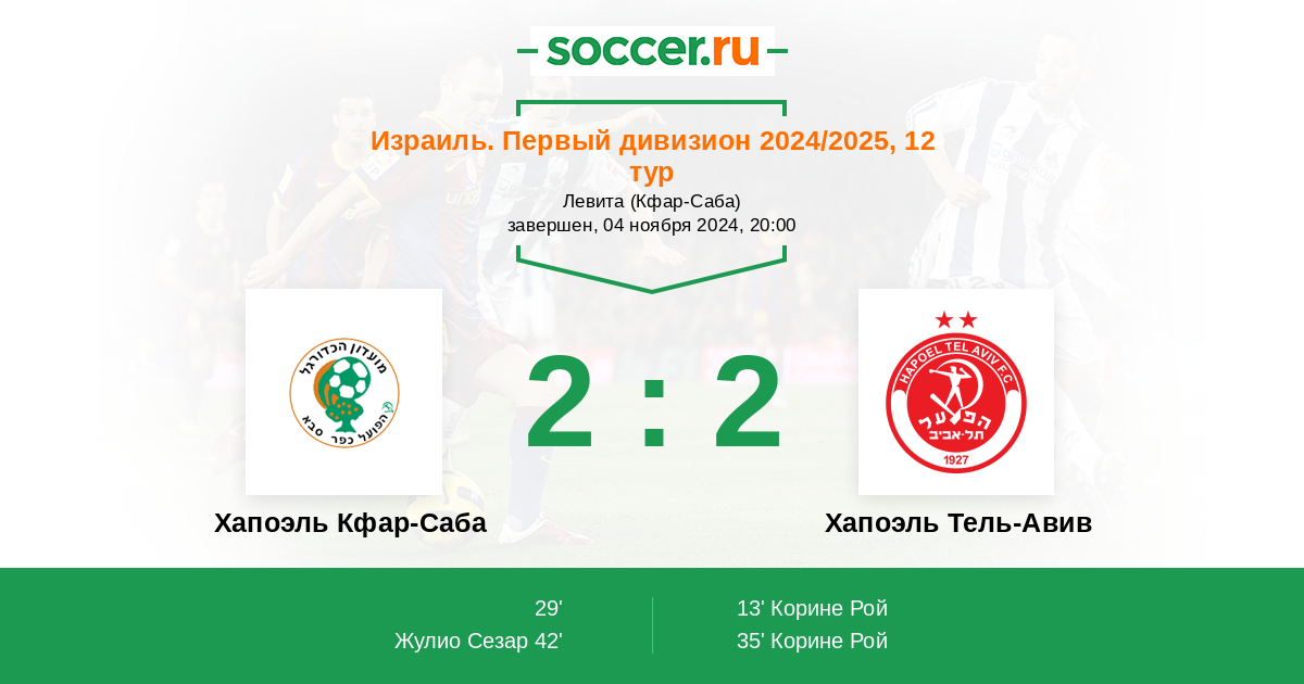 Протокол матча Хапоэль Кфар-Саба против Хапоэль Тель-Авив