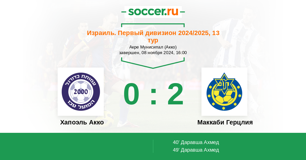 Протокол матча Хапоэль Акко против Маккаби Герцлия