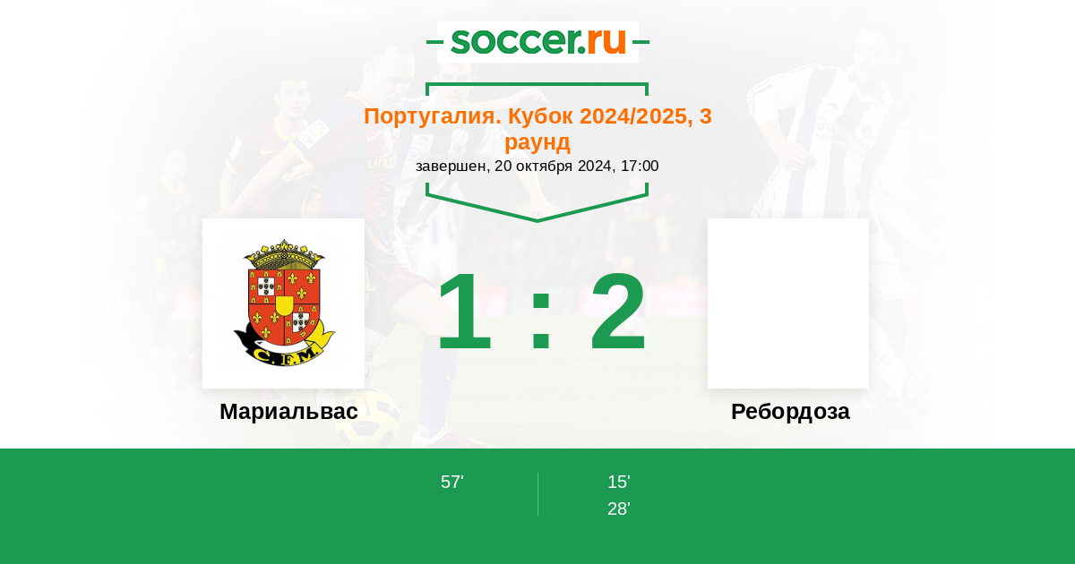 Протокол матча Мариальвас против Ребордоза