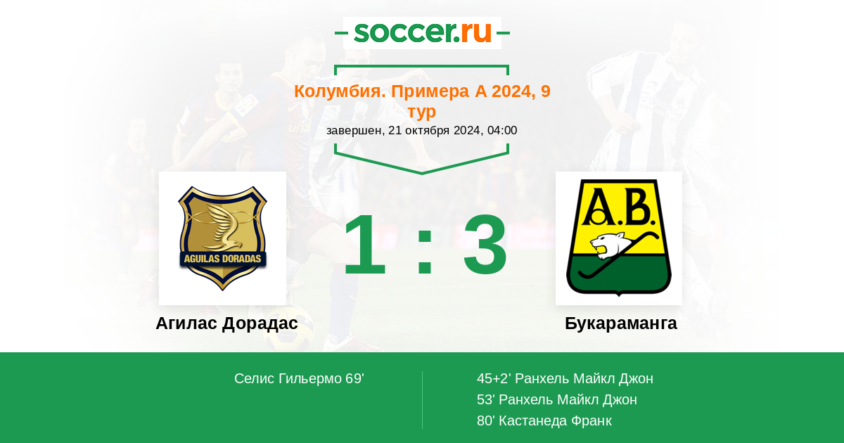 Протокол матча Агилас Дорадас против Букараманга