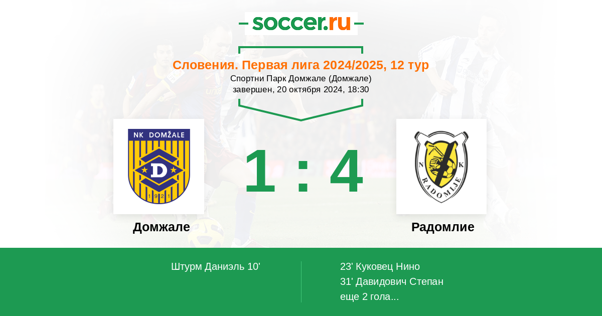 Протокол матча Домжале против Радомлие