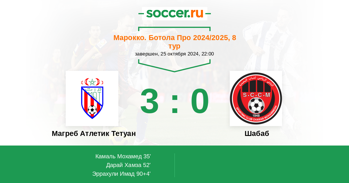 Протокол матча Магреб Атлетик Тетуан против Шабаб