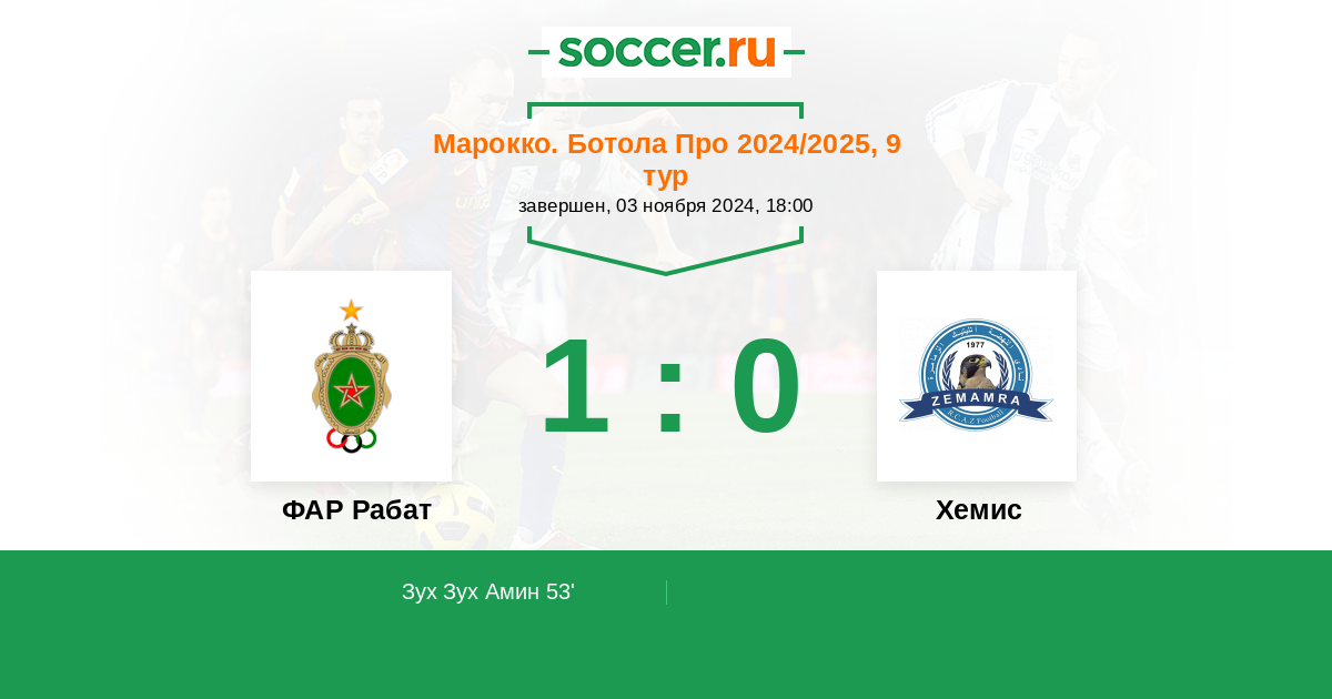 53' (1:0) Зух Зух Амин (10) (Римат Мохамед (34))