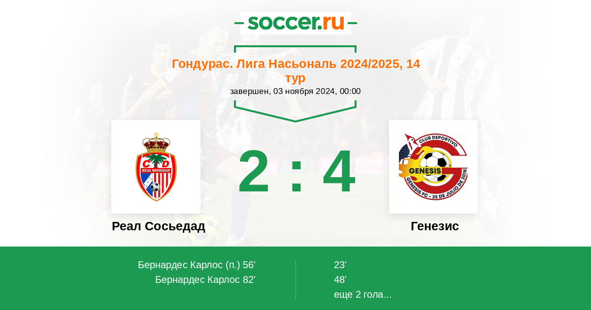 Протокол матча Реал Сосьедад против Генезис