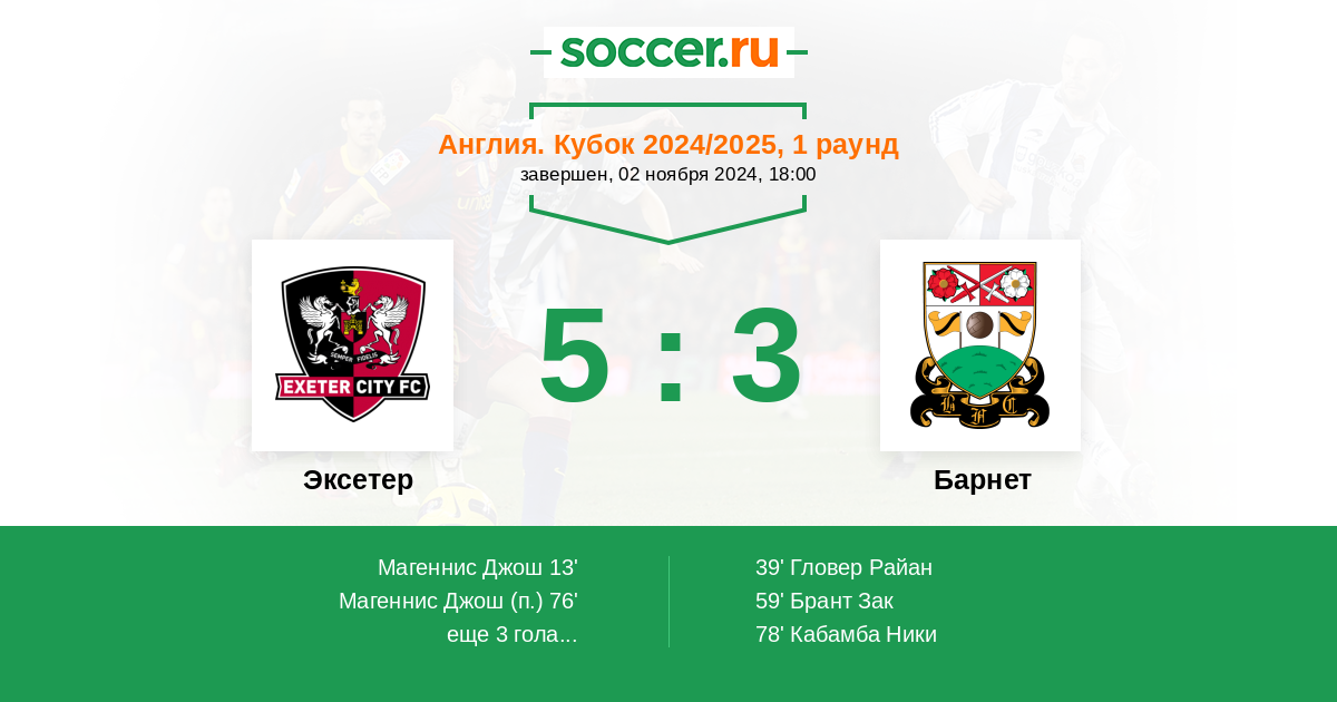 Протокол матча Эксетер против Барнет