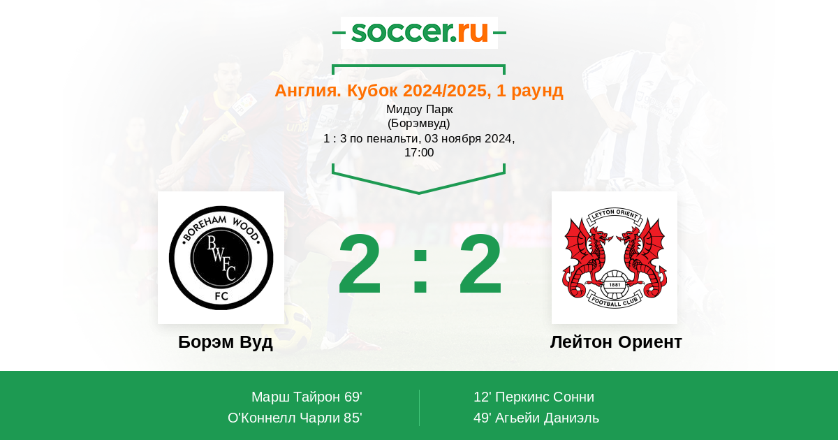 Протокол матча Борэм Вуд против Лейтон Ориент
