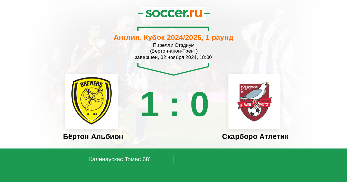 Протокол матча Бёртон Альбион против Скарборо Атлетик