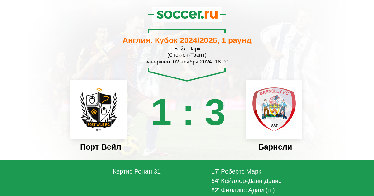 Протокол матча Порт Вейл против Барнсли