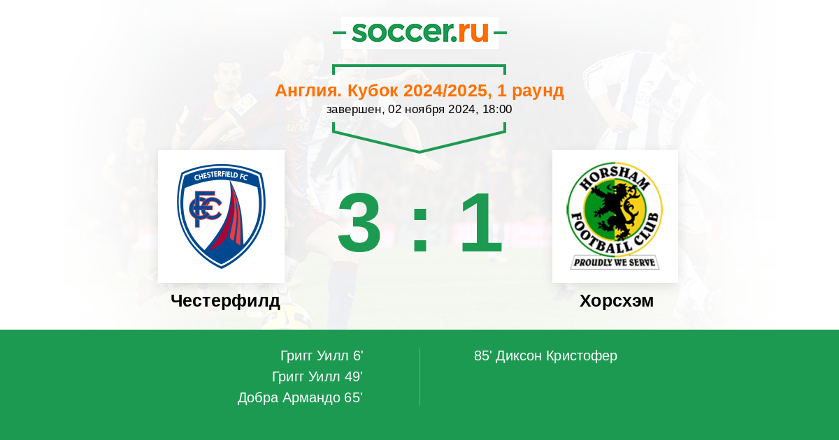 Протокол матча Честерфилд против Хорсхэм