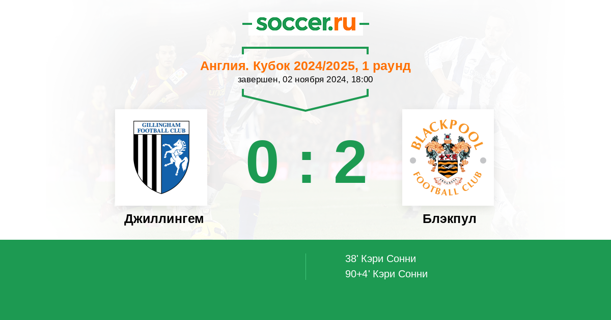 Протокол матча Джиллингем против Блэкпул