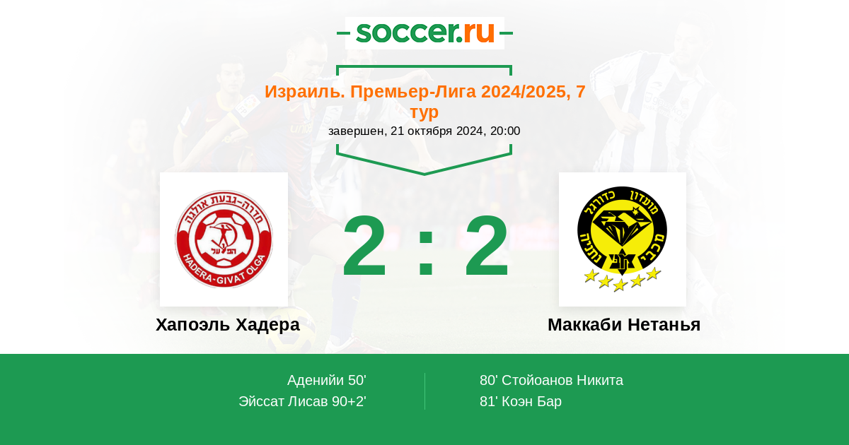 Протокол матча Хапоэль Хадера против Маккаби Нетанья