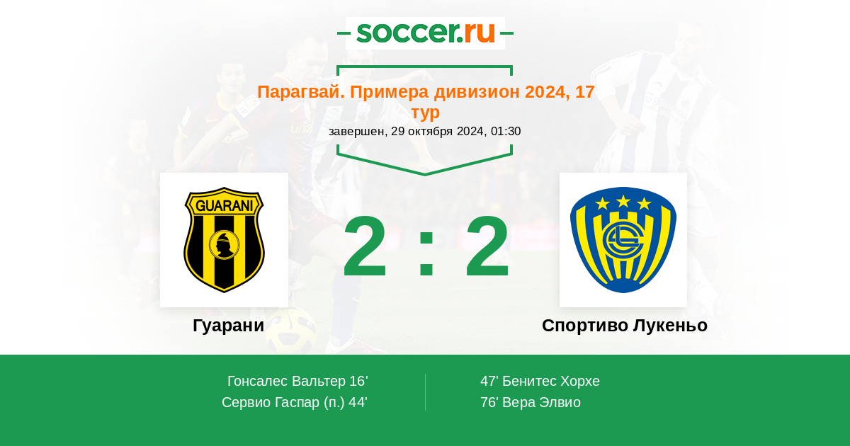 Протокол матча Гуарани против Спортиво Лукеньо