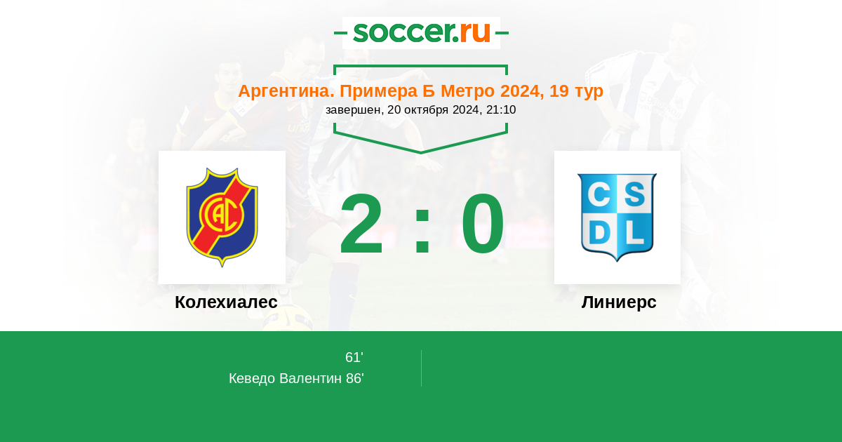 Протокол матча Колехиалес против Линиерс