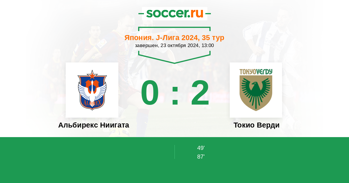 Протокол матча Альбирекс Ниигата против Токио Верди