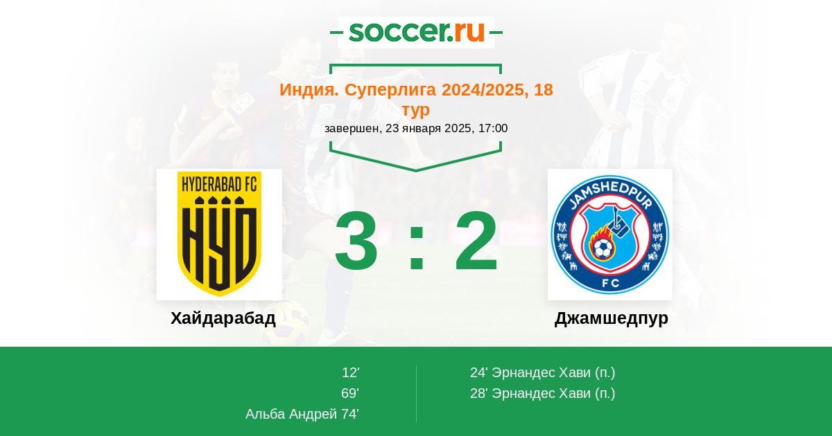 Протокол матча Хайдарабад против Джамшедпур