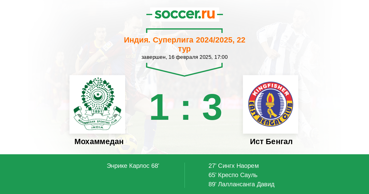 68' (1:2) Энрике Карлос (9) (R. Hansda)