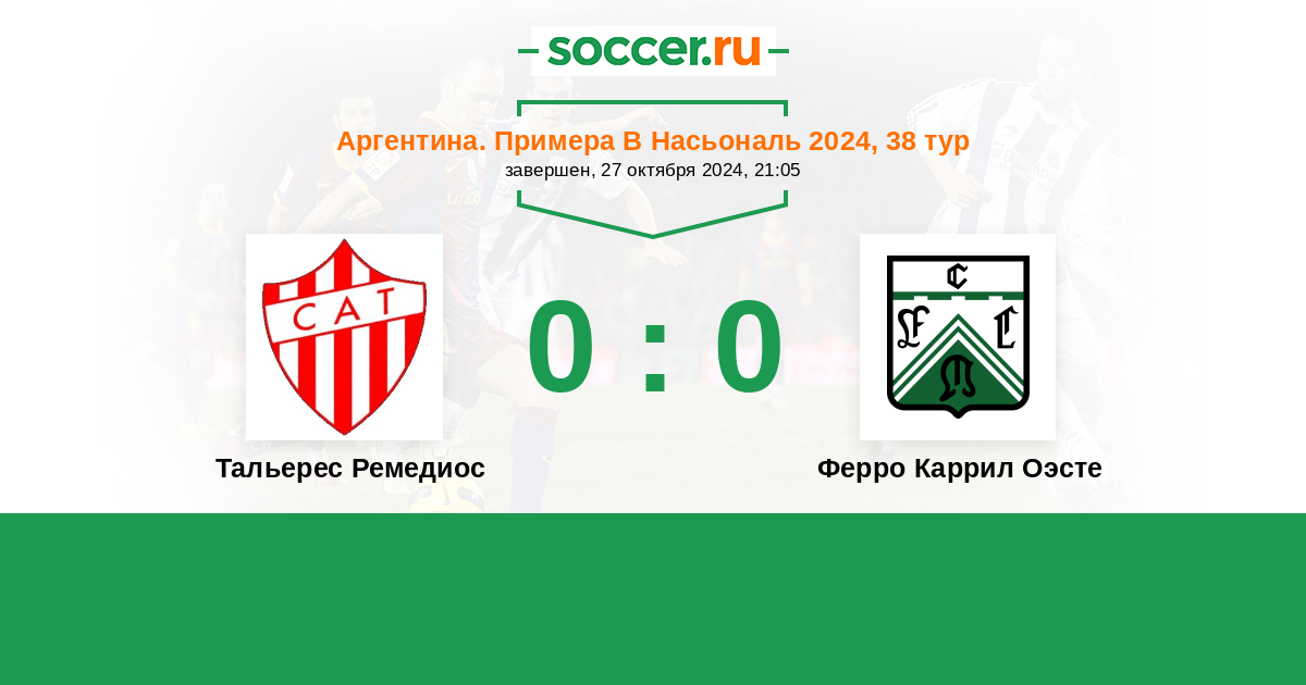 Протокол матча Тальерес Ремедиос против Ферро Каррил Оэсте