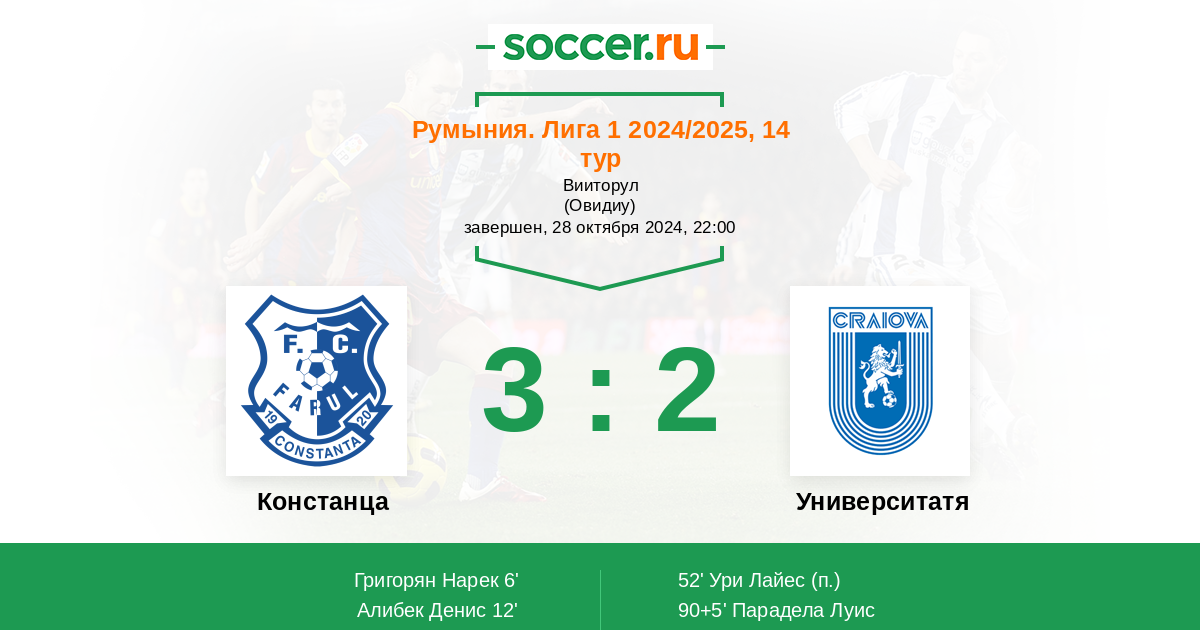 Протокол матча Фарул против Университатя Крайова
