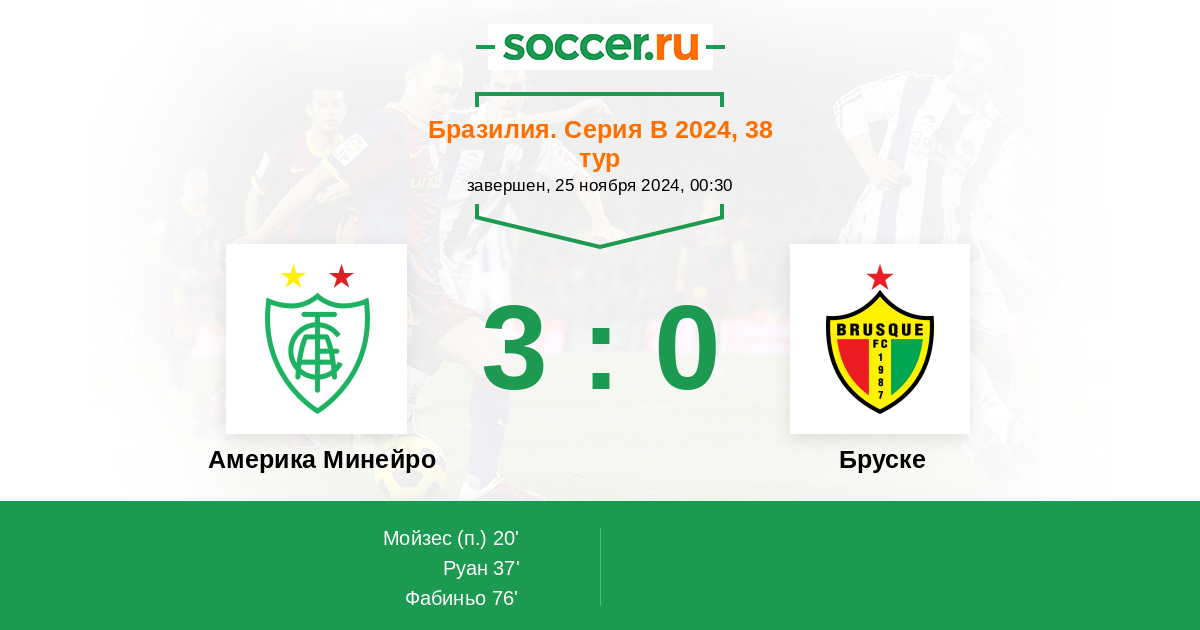 Протокол матча Америка Минейро против Бруске