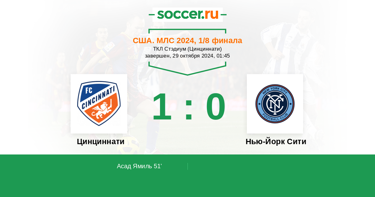 Протокол матча Цинциннати против Нью-Йорк Сити