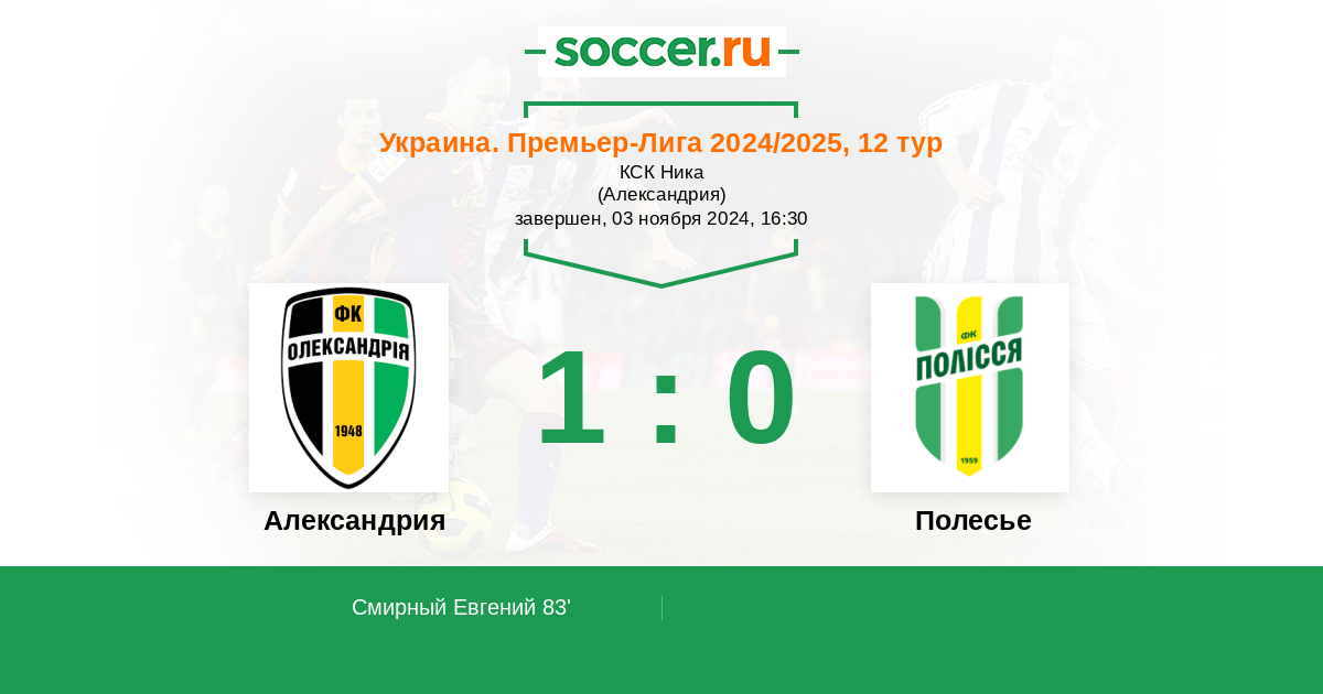 Протокол матча Александрия против Полесье