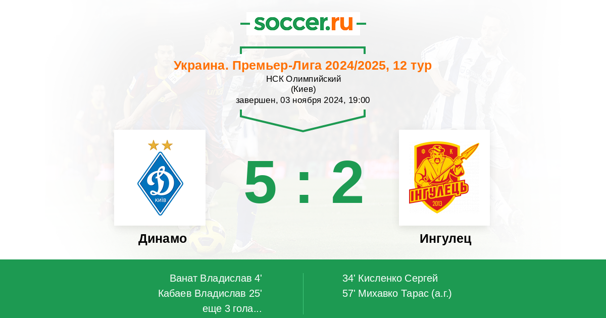 Протокол матча Динамо против Ингулец