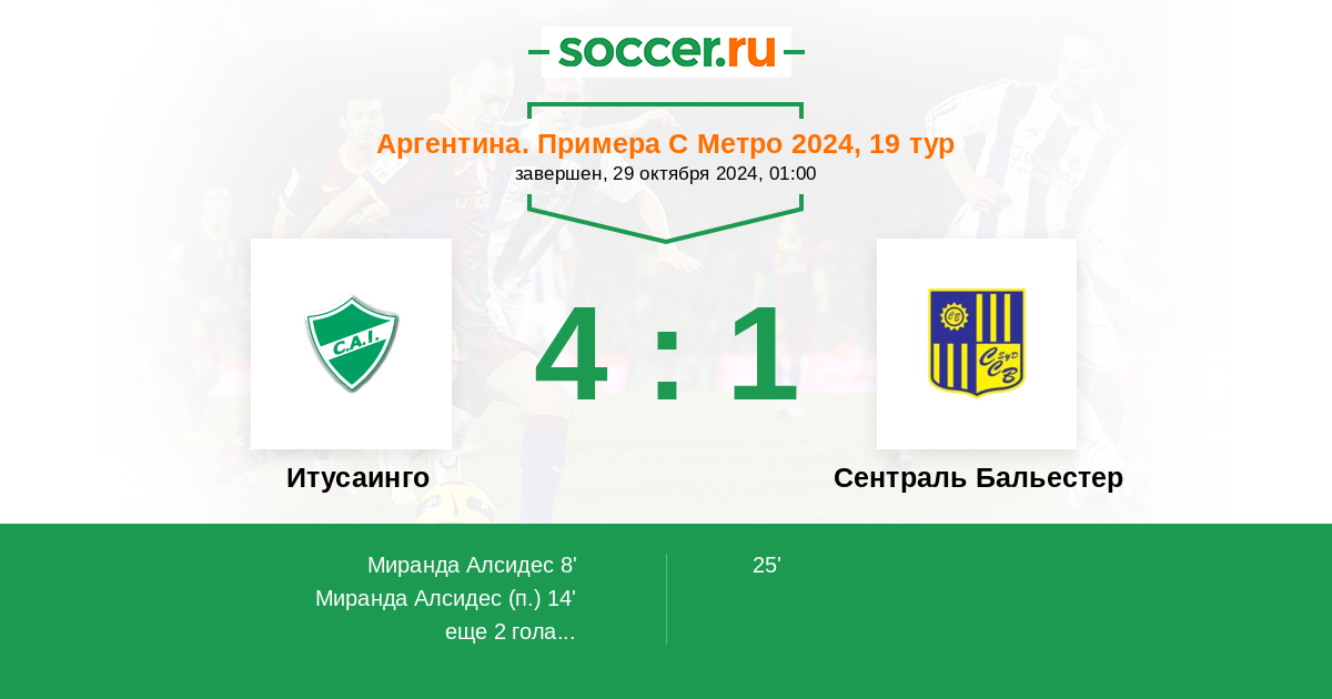 Протокол матча Итусаинго против Сентраль Бальестер