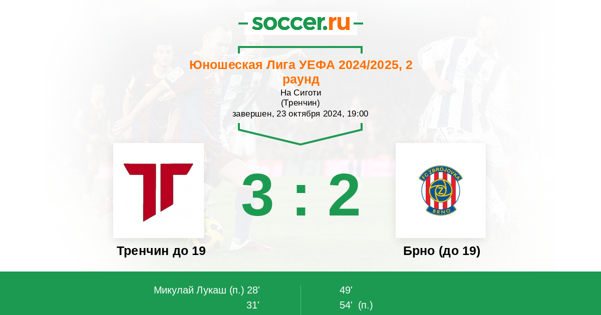 Протокол матча Тренчин до 19 против Брно (до 19)