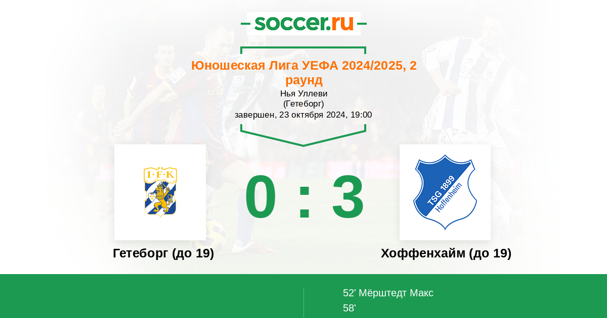 Протокол матча Гетеборг (до 19) против Хоффенхайм (до 19)